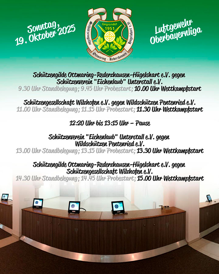Die erste Runde der Luftgewehr Oberbayernliga (Saison 2025/2026) startete am Sonntag, 19. Oktober 2025 in Ottmaring.Vielen Dank allen fleißigen Helfern...