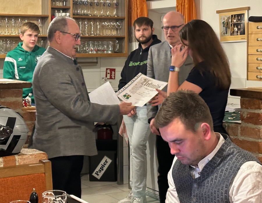Die Ehrennadel „Silberne Gams“ wurde an Lena Spicker für ihr besonderes Engagement sowie ihre Weiterbildung in der Jugendarbeit verliehen.