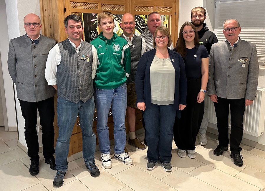 v.l.n.r.: Peter Höß, Peter Schwibinger, Anton Draheim, Daniel Wrigley, Stefan Schneider, Veronika Widmann, Lea Spicker, Thomas Koller und Paul SchwibingerMit großer Wertschätzung ehrte die Schützengilde zudem ihre langjährigen Mitglieder persönlich: